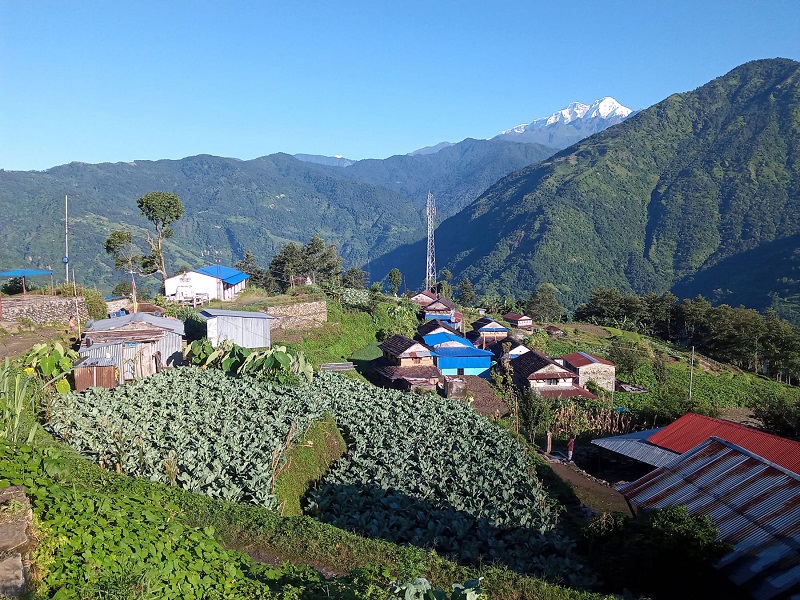 मर्स्याङ्दी गाउँपालिका वडा नं. ८ स्थित भुस्मे घरवास एवं सो गाउँमा लगाइएको तरकारी खेती । तस्बिर :जनक....