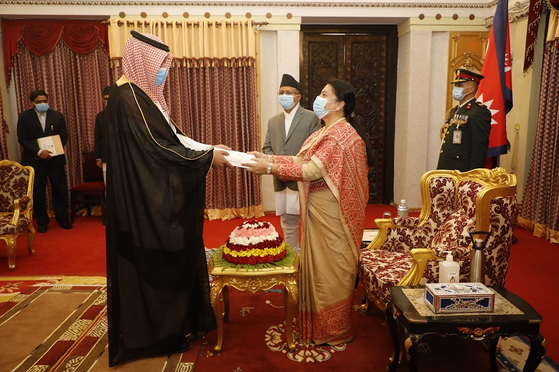 राष्ट्रपति विद्यादेवी भण्डारी समक्ष नेपालका लागि साउदी अरेबियाका नवनियुक्त राजदूत साइद नसर अब्दुल अबु हाइमिडले....