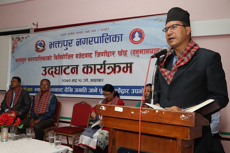 भक्तपुर नगरपालिका-७ मा जिर्णोद्वार सम्पन्न खोह्र (हनुमानघाट) पुलको आईतबार उद्घाटन कार्यक्रममा सम्बोधन गर्दै....